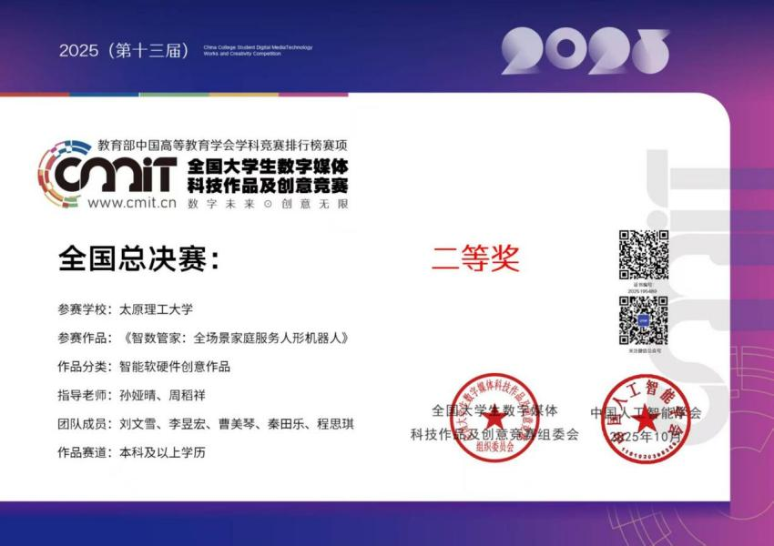 本学年班级在学科竞赛与专业技能竞赛中取得丰硕成果,累计获得国家级、省级、校级奖项13人次,实现了100%的竞赛参与覆盖率。竞赛层级覆盖A1、B、S三类赛事,其中国家级奖项4项,包括数字媒体科技作品竞赛的国家级一等奖和二等奖、智能照明与智能穿戴创新创业大赛的国家级一等奖、睿抗机器人开发者大赛的国家级三等奖;省级奖项7项,涵盖数学竞赛、外研社国才杯、iCAN物联网大赛、蓝桥杯等专业赛事,获得省级一等奖1项、二等奖2项、三等奖4项;校级奖项2项,为挑战杯和数学建模竞赛的校级一等奖。从时间分布看,大二上学期获奖6人次,大二下学期获奖7人次,呈现持续提升态势。特别值得一提的是,在A1类高水平赛事中表现突出,累计获得7项奖项,尤其在数字媒体、机器人开发、软件设计等计算机核心领域斩获多项国家级大奖,充分展现了扎实的专业功底与突出的创新能力。更值得关注的是,班级构建的 "以赛验课、以赛促学" 机制成效显著,将《数据结构与算法》《JAVA语言程序设计》等课程内容与竞赛知识点深度融合,课堂项目直接转化为竞赛作品,实现了课程学习与竞技实践的良性互动。